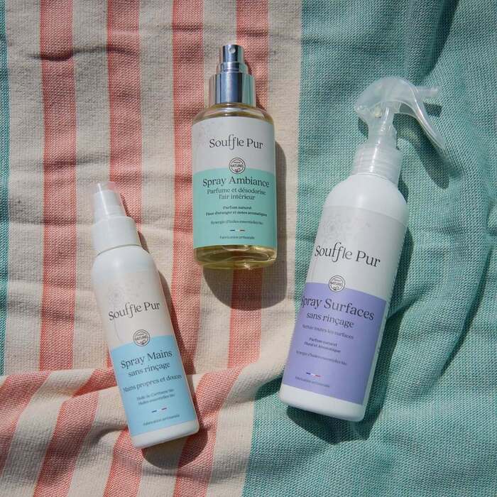 Je propose également 3 sprays, formulés avec des huiles essentielles, reconnues depuis toujours pour leurs vertus assainissantes.