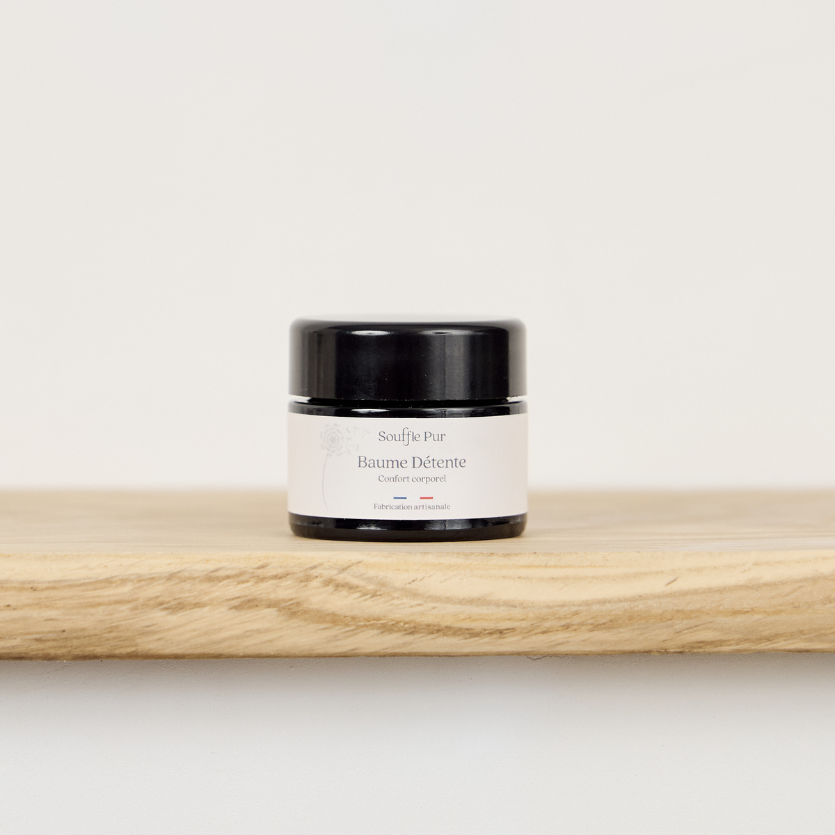 Offrez un soin réconfortant à votre corps avec notre Baume Détente. Formulé avec des ingrédients rigoureusement sélectionnés pour leurs bienfaits anti-inflammatoire et anti-douleur, connus depuis des centaines d'années. Chaque application est une invitation à la sérénité, grâce à une synergie d'huiles essentielles et végétales qui travaillent en harmonie pour soulager tensions et inconforts.