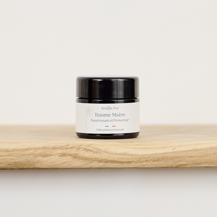 J'ai créé ce baume pour offrir à vos mains la douceur et le réconfort qu'elles méritent. Un concentré de nature qui nourrit, répare et protège en profondeur. Sa texture fondante pénètre rapidement, laissant un voile de douceur sans effet gras.