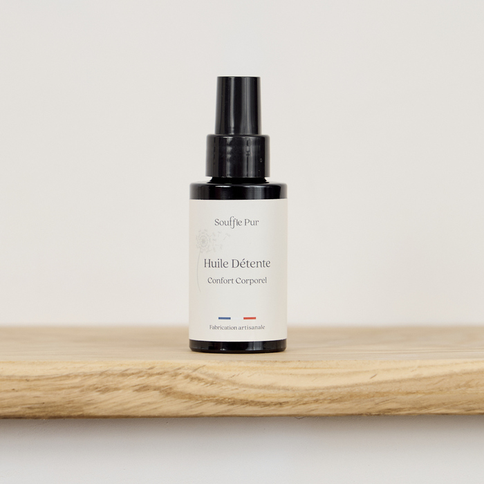 Offrez un soin réconfortant à votre corps avec notre Huile Détente. Formulé avec des ingrédients rigoureusement sélectionnés pour leurs bienfaits anti-inflammatoire et anti-douleur, connus depuis des centaines d'années. Chaque application est une invitation à la sérénité, grâce à une synergie d'huiles essentielles et végétales qui travaillent en harmonie pour soulager tensions et inconforts.